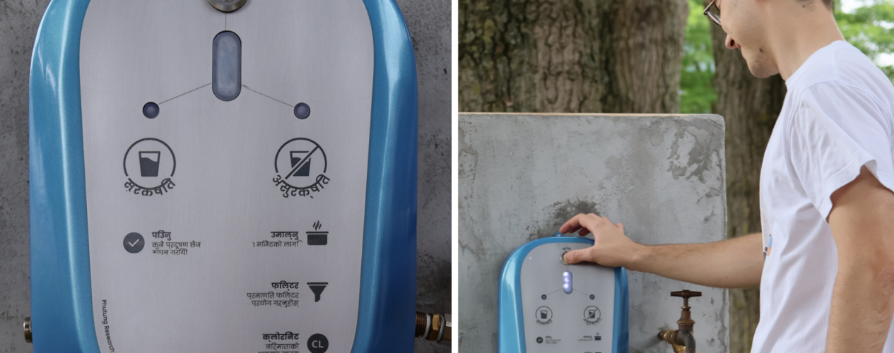 In rural areas, women are primarily responsible for collecting water and benefit most from user-friendly solutions. The device uses a durable stainless steel casing and an automated self-cleaning system that flushes the internal testing unit with isopropanol every 100 tests.